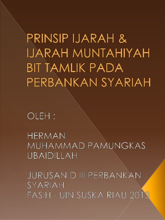 blogvendr.blogspot.com › 2019/12/30-ijarah30 Ijarah Muntahiyah Bittamlik Dan Aplikasinya Di Bank ... Dec 22, 2019 · 30 Ijarah Muntahiyah Bittamlik Dan Aplikasinya Di Bank Syariah. Ditulis Anonim Minggu, 22 Desember 2019 Tulis Komentar. Edit. Rukun transaksi ijarah meliputi a transaktor yakni penyewa dan pemberi sewa b objek ijarah yakni fasilitas dan uang sewa. Akad ijarah mutahiyyah bittamlik. Tugas Akhir Implementasi Pembiayaan Ijarah Muntahiya Bit.
