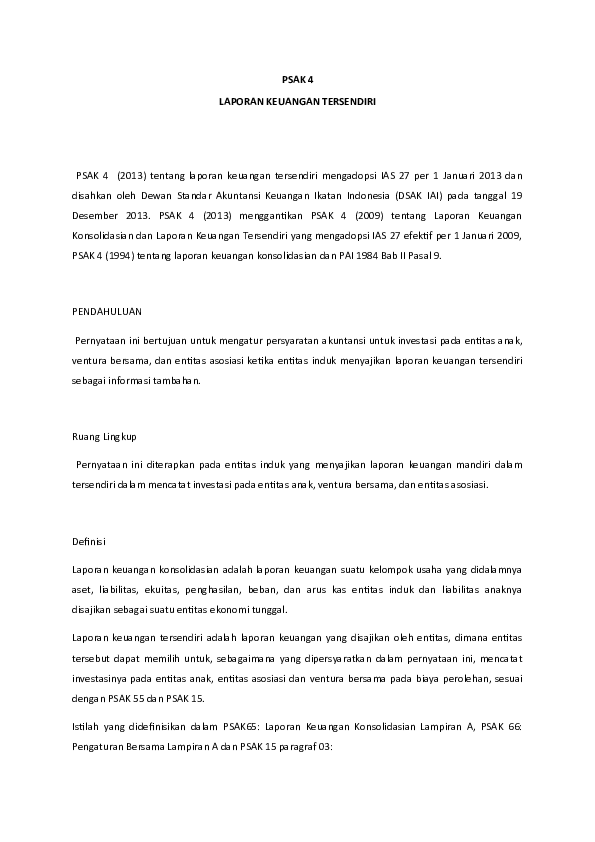 PSAK 15 Investasi Pada Entitas Asosiasi - Scribd PSAK 15 in Indonesian. Lockheed Corporation Makalah Dan Kasus. PSAK No. 56 Laba Per Saham. Resume PSAK 4 2013. Pelaporan Dan Akuntansi Keuangan - Kombinasi Bisnis, Laporan Konsolidasi, Special Purpose Entity Dan Investasi Pada Entitas Asosiasi. Makalah Bank Indonesia. M03 - PSAK 56 - Laba Per Saham.